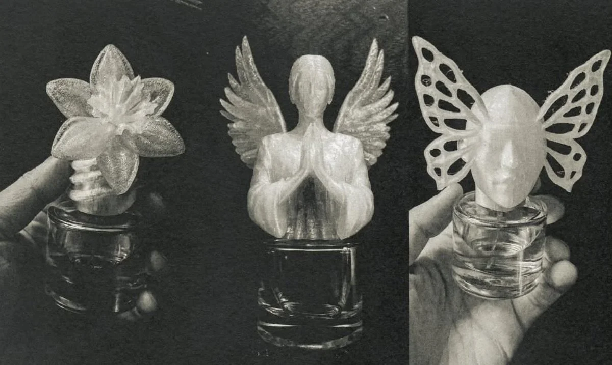 The architecture of the bottles and caps is deliberate: for example, “Flower Study” features a matte-black magnolia-shaped cap; “Love & Hate” uses a sculptural torso with angel/demon wings motif. Hypebeast+1